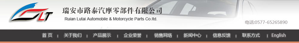 瑞安市路泰汽摩零部件有限公司 通信地址:浙江省瑞安市场桥浦桥工业区 TEL:0577-65265890 FAX:0577-65265899 E-mail:lb@lubaocn.com